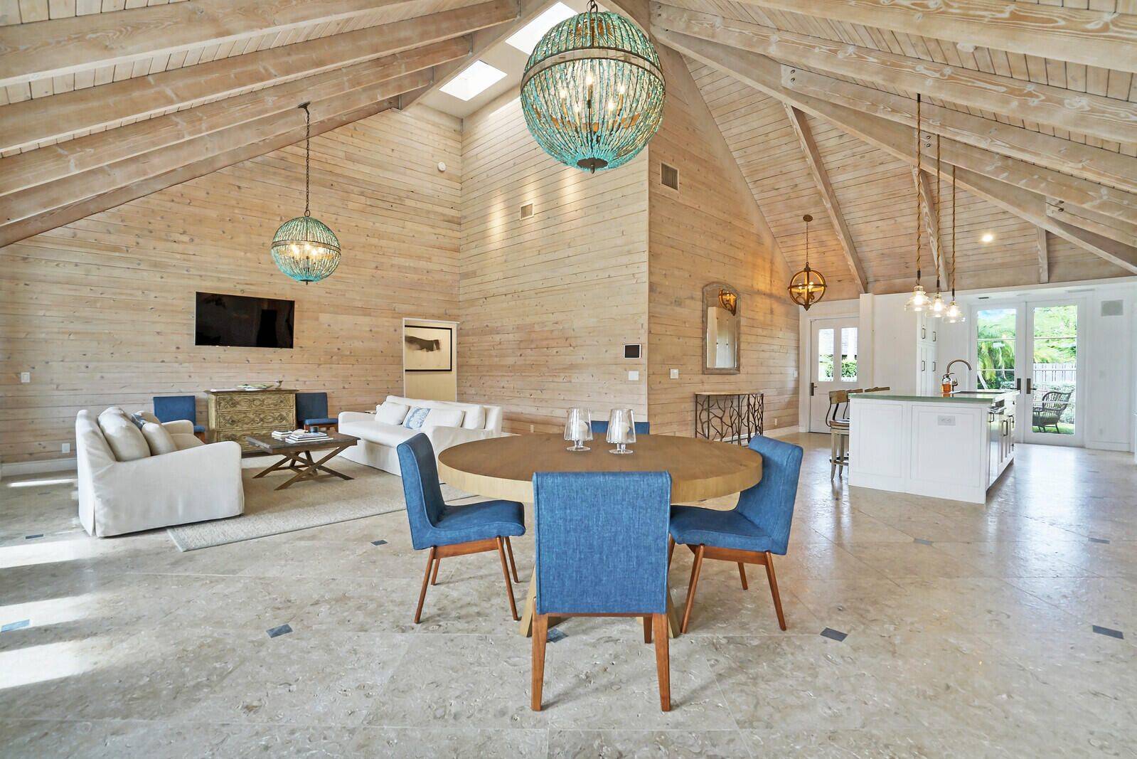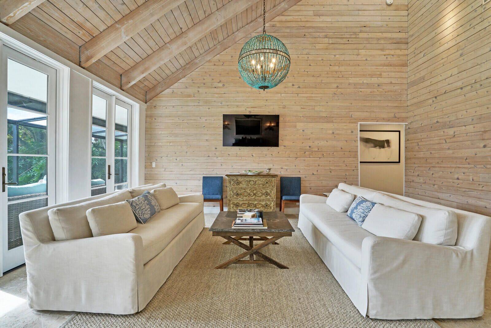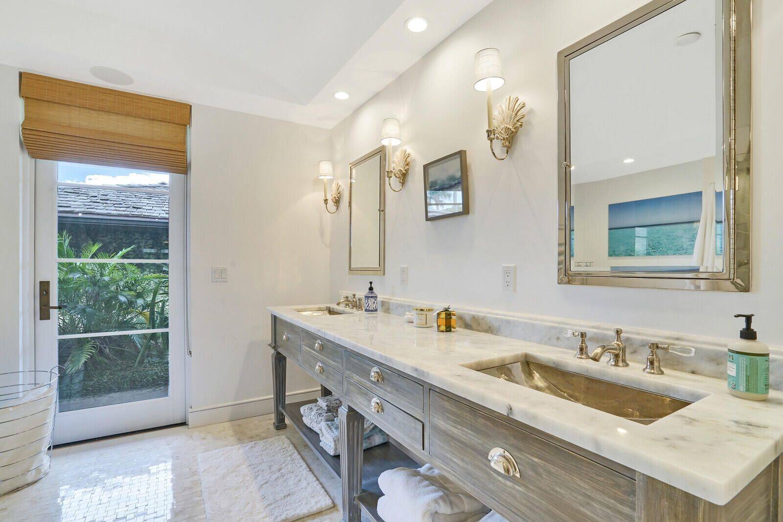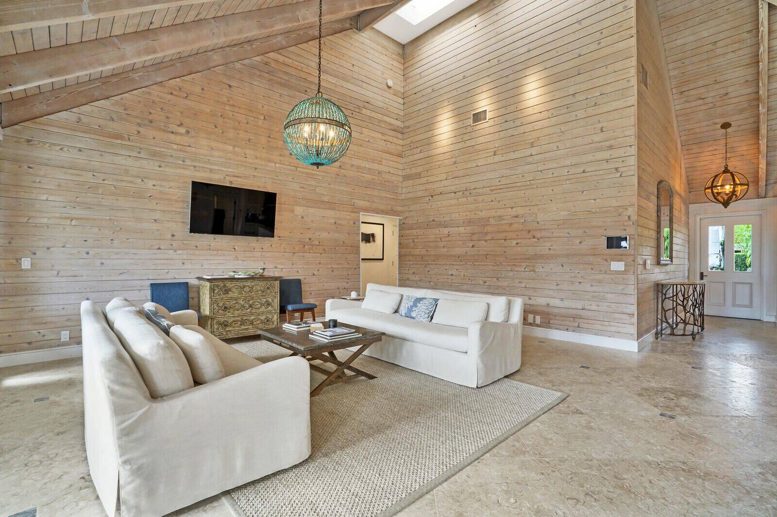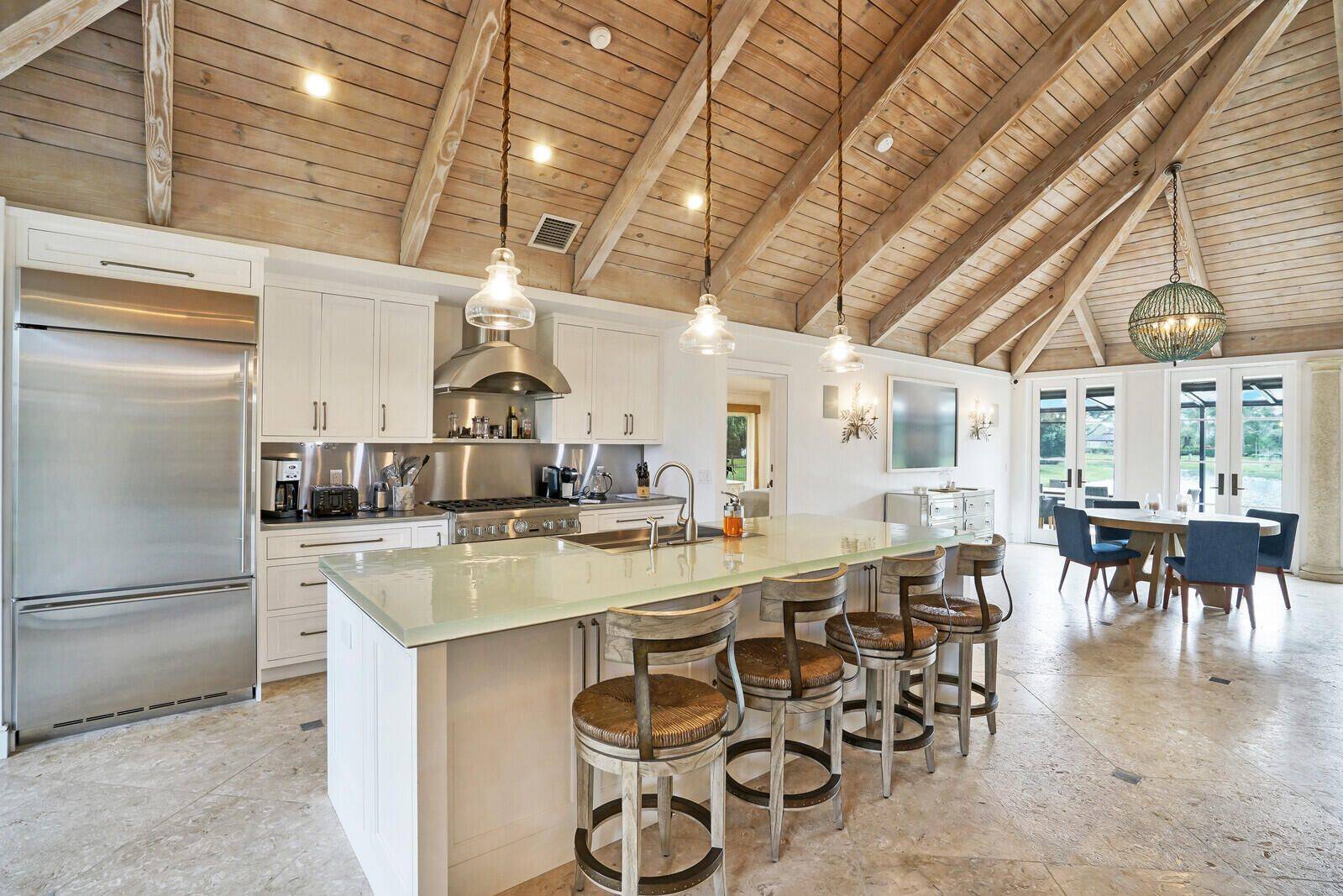 Ultra modern 3 bedroom, 3 bathroom bungalow located in the Pebblewood neighborhood in the Palm Beach Polo & Country Club. Superbly designed, this home captures your attention with its dramatic vaulted wood ceilings and walls, built in speakers, clean lines, French doors and a bright open floor plan. This impeccable home is warm and inviting with a split floor plan and includes 2 beautiful master suites with en-suite bathrooms and outdoor access. Each room adorns premium textured stone, wood and marble flooring throughout the home. The eye-catching gourmet kitchen offers stainless steel appliances with a Thermidor gas range, stainless steel countertops and farmhouse sink and comes complete with a glass topped island. Soak up the beautiful south Florida morning sunrises on the screened back patio overlooking the lake. This spacious home is the only detached bungalow in the neighborhood and has a 1 car garage with a private, immaculately landscaped front courtyard.