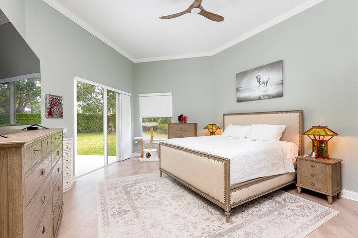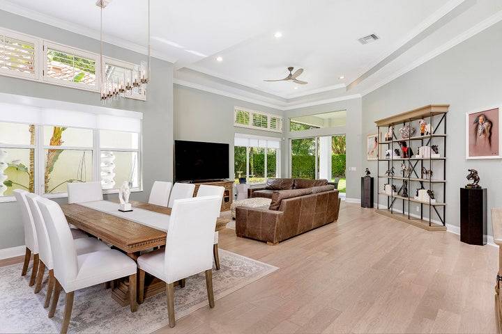 Some of the incredible features of this home include transom windows with plantation shutters, crown molding, hand scraped hickory hardwood floors, customized and motorized window blinds, upscale RH lighting fixtures and fans. This home also includes an updated laundry room, a 2 car garage with golf cart storage, and a new AC unit. Restore and relax outdoors on the covered patio with new tile flooring, an electric screen enclosure, a privately landscaped fenced-in backyard and new exterior lighting. Set your sights on this exclusive property in close proximity to dining, entertainment, shopping and the world-class Winter Equestrian Festival!