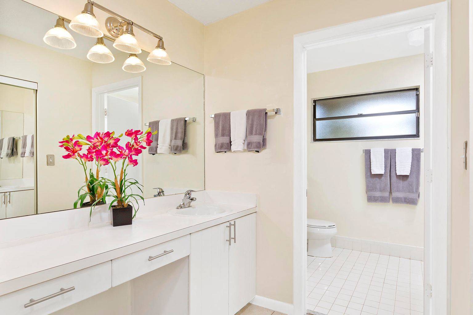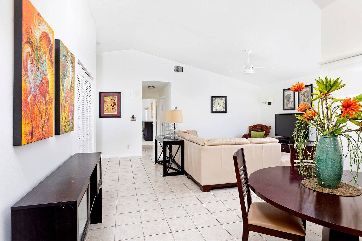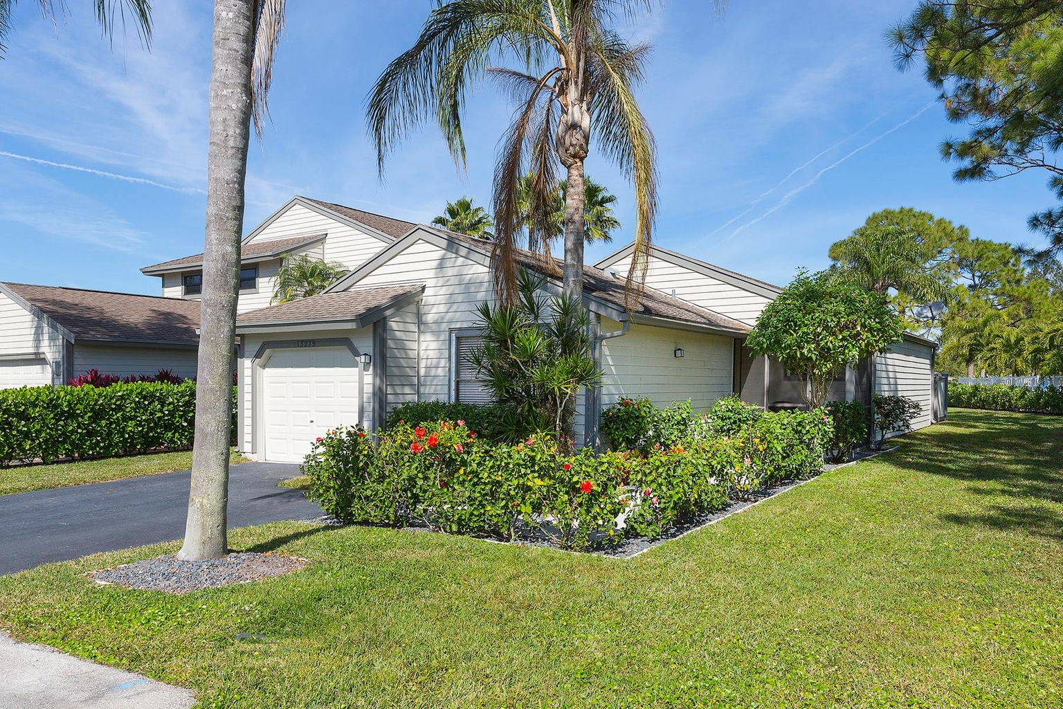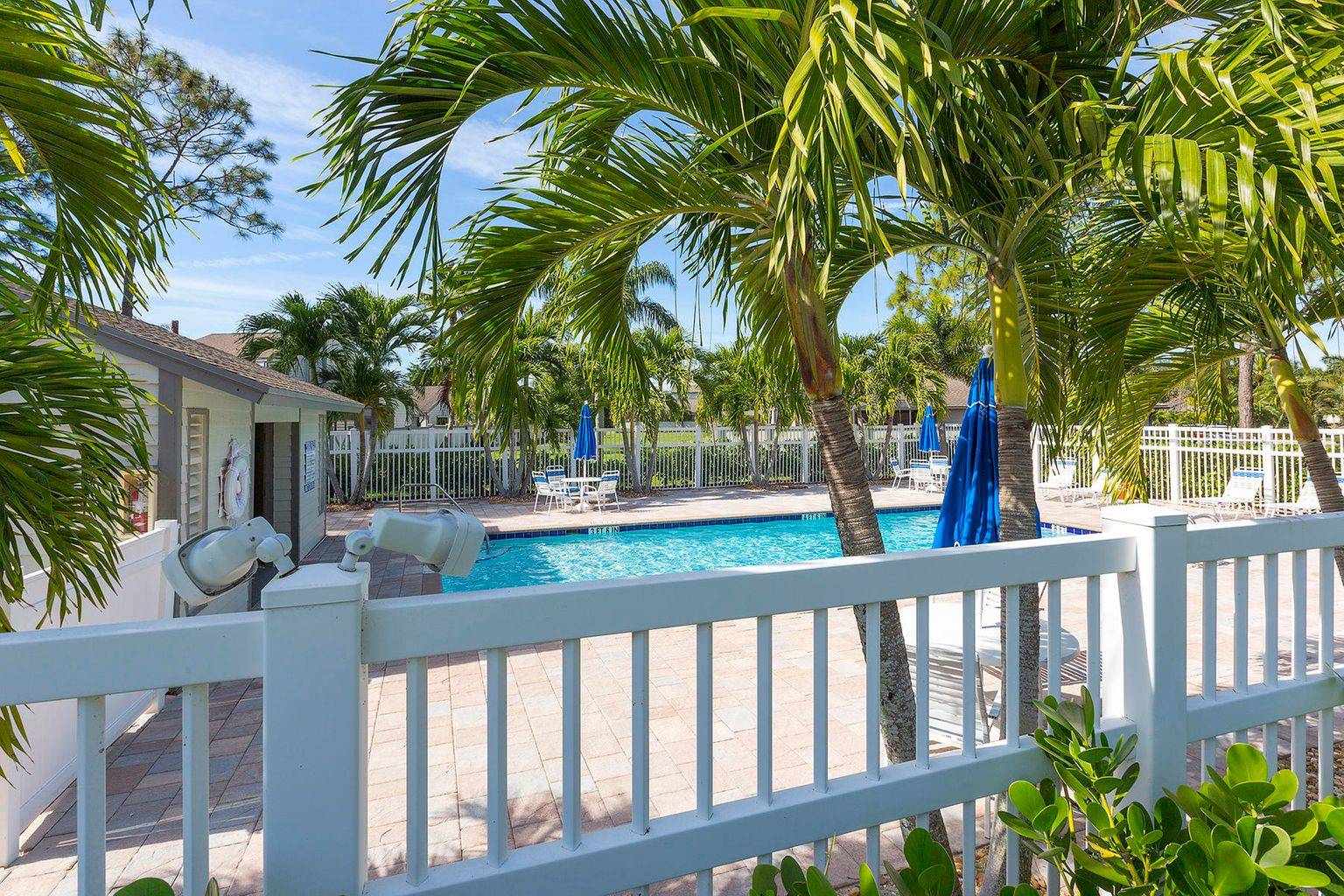 Experience the convenience of the in demand Bedford Mews location. This attractive 2 bedroom/2 bathroom home has been newly painted, updated, and is being sold furnished. The large master bedroom welcomes you and includes an en-suite bathroom. The living room & newly remodeled kitchen open directly onto the screened patio. The quiet, spacious back yard is completely fenced in for privacy. Relax and refresh in the comfort of your own dipping pool or find yourself steps away from the community pool. This desirable end unit is located adjacent to expansive green open space. The property includes a screened front entry patio, tile throughout, custom shades, hurricane shutters, a 1 car garage, and plenty of room to entertain.