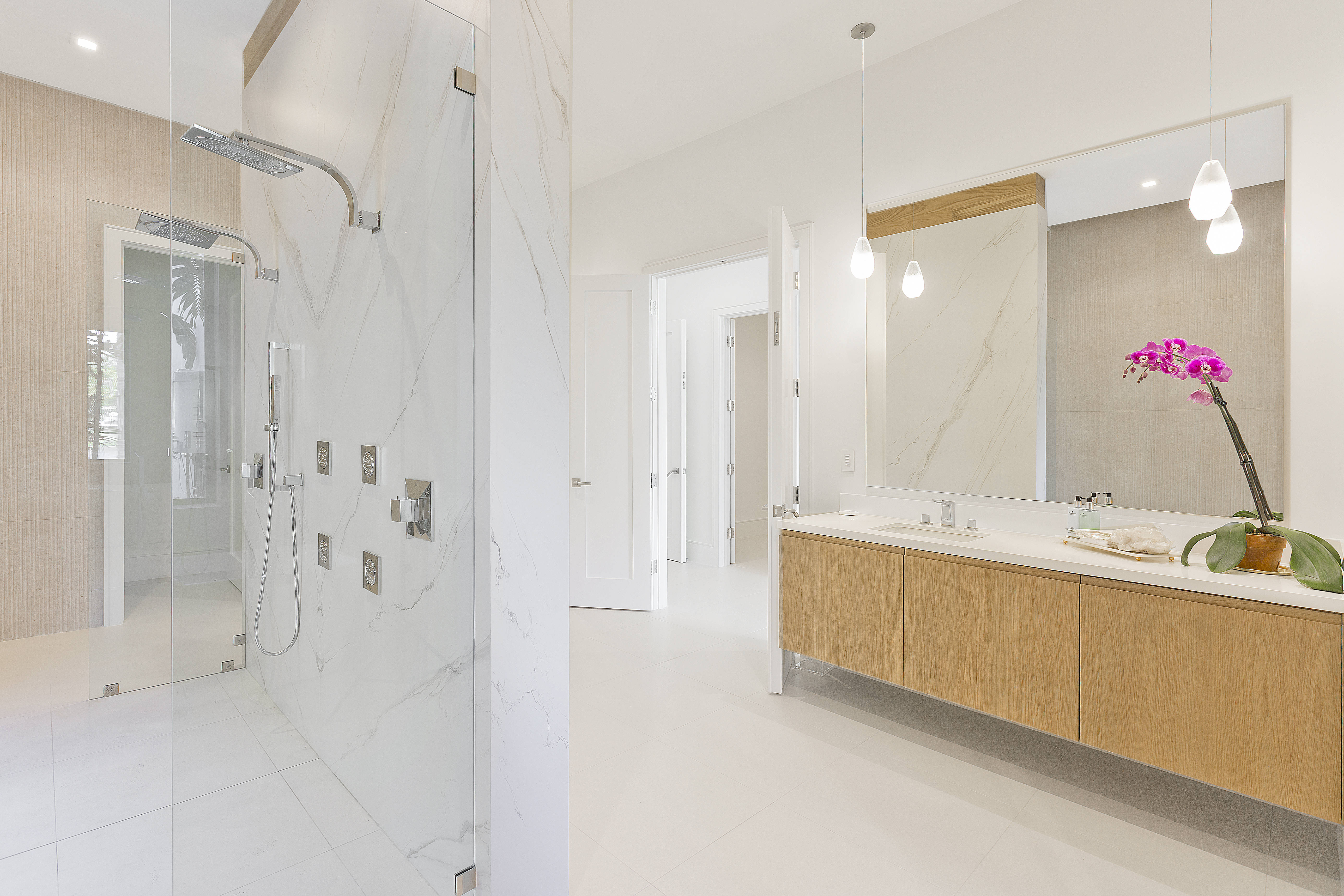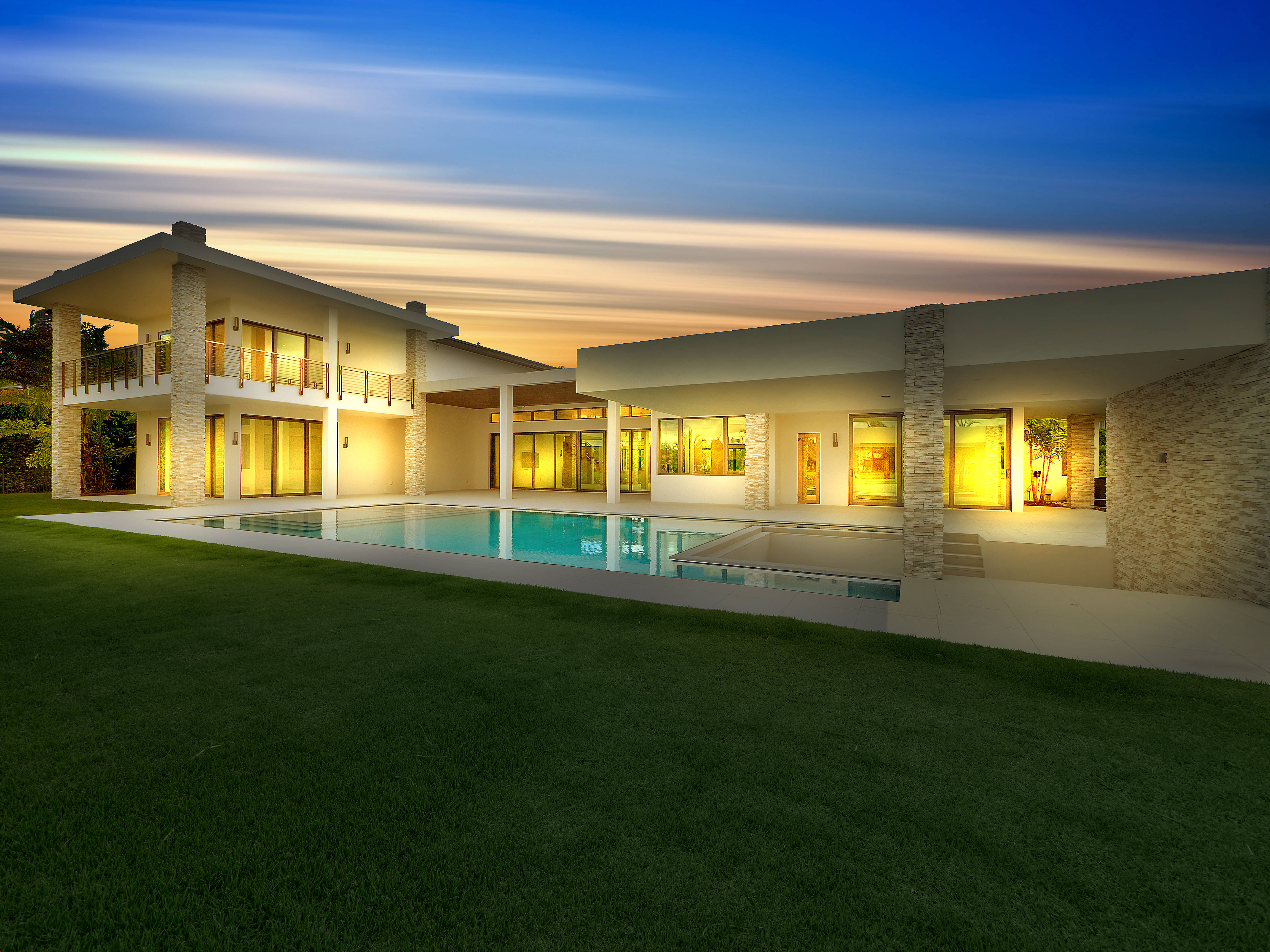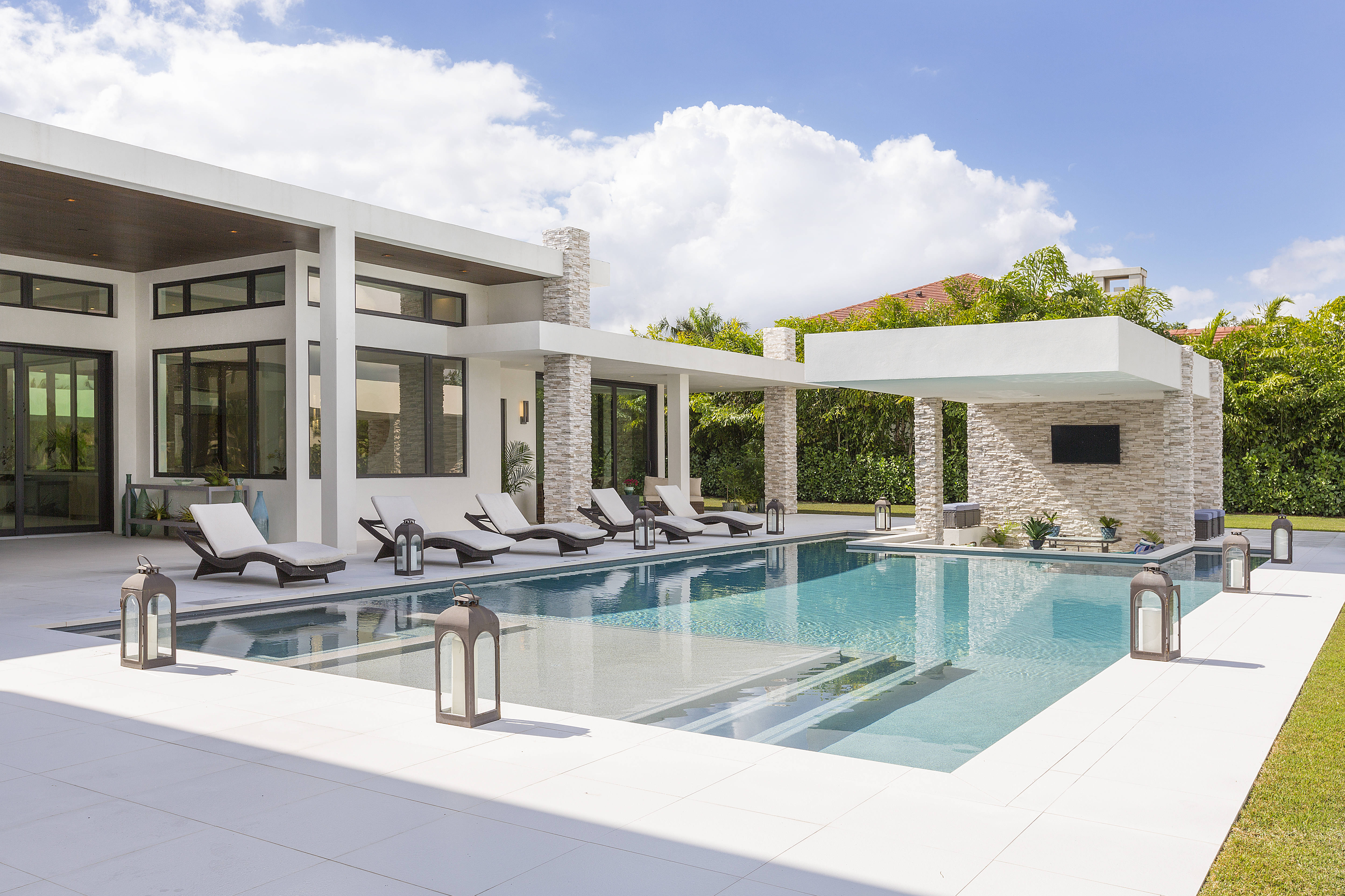 Live and entertain like a Rock Star in the newest and most sought-after community in Wellington's Palm Beach Polo Club. The exquisitely constructed, gated, 6-bedroom/8.5-bath lake-view transitional home was designed by Insite Design Group. Boasting a double master suite on both floors, outdoor shower, two double garages with pull-through design and a staff / in-law quarters with private entrance. Enjoy sunset water views behind the cascading waterfall from the comfort of the sunken lounge. Unprecedented and extraordinary swimmers dream pool & spa, terrace, entertainment area and summer kitchen.