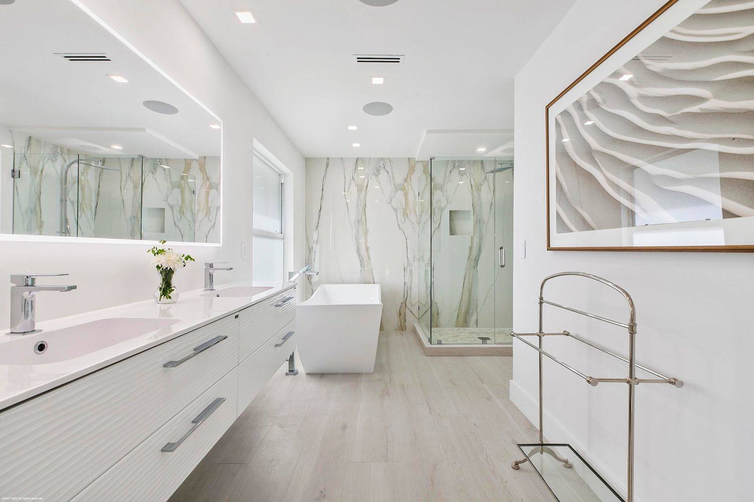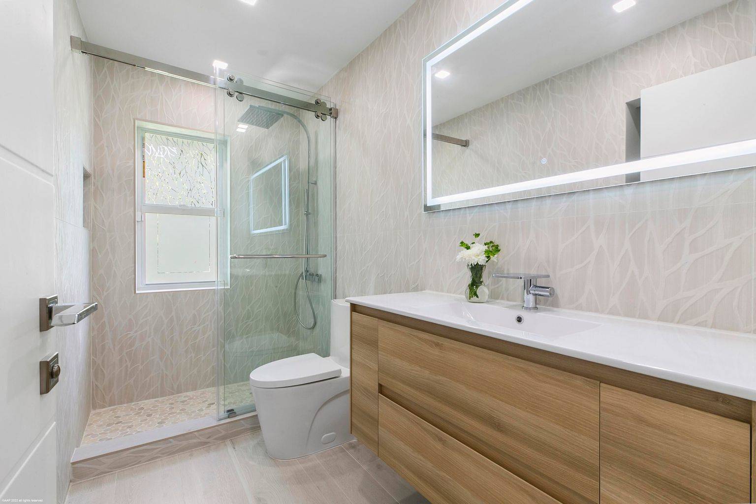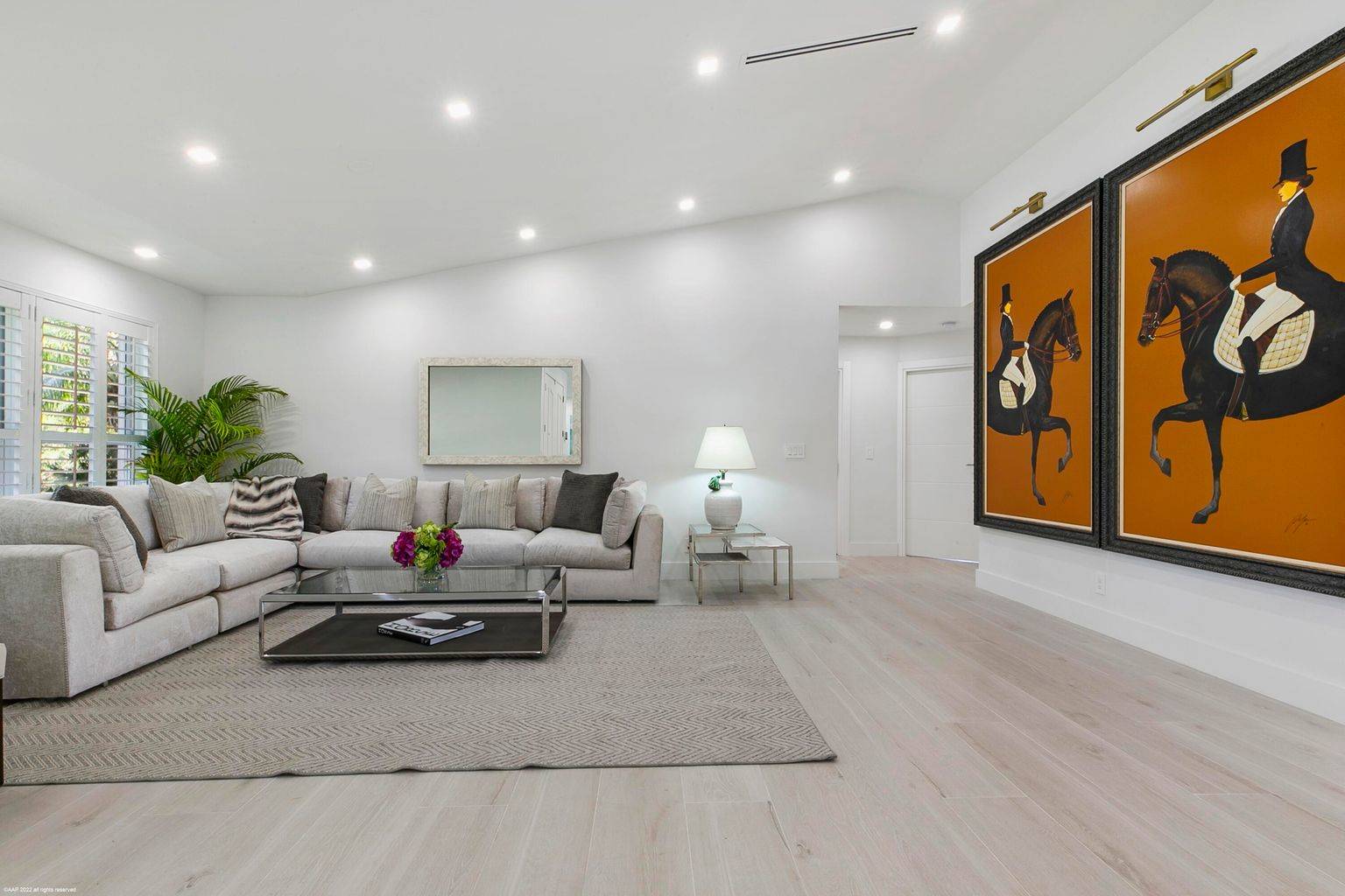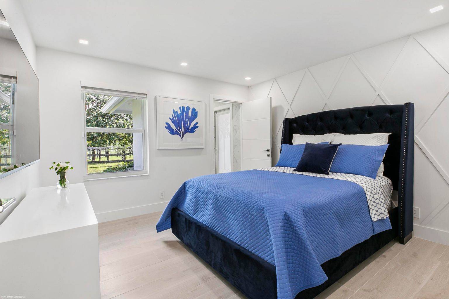 Be the first to live in this brand newly renovated home! This CBS, 5bed/4bath, reimagined pool home sits on 2.78acres in the private and quiet Paddock Park neighborhood, just minutes to Wellington International and Global Dressage. The home is ready for you to move right in! It was taken to the studs and made anew. When you enter the Dutch blue, double front doors, experience the modern, inviting and warm ambiance this home offers. It has high ceilings, an open and split floor plan, porcelain tile flooring throughout, recessed lighting on smart dimmer switches that can be verbally controlled, linear AC vents, and complete impact windows and doors. The kitchen features stainless steel Fulgor Milano appliances, breakfast bar, stunning sandblasted waterfall island and custom soft-close cabinetry. The primary bedroom has a large walk-in closet. The primary bathroom is complete with a soaking tub, separate shower, dual sinks and isolated water closet. The guest rooms exhibit stunning, custom decorative wall paneling and textures. All bathrooms are tiled floor-to-ceiling and have backlit, fog-free mirrors and rain shower heads along with dimmable lights for those early horse show mornings. The laundry room has plenty of storage, and the roof was replaced in 2017. There is Sonos throughout. The home is wired with Vivint security system as well as high speed WiFi.